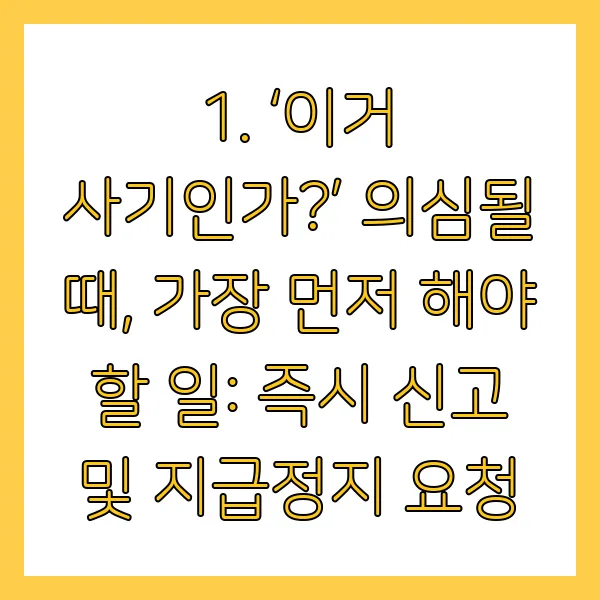 1. ‘이거 사기인가?’ 의심될 때, 가장 먼저 해야 할 일: 즉시 신고 및 지급정지 요청